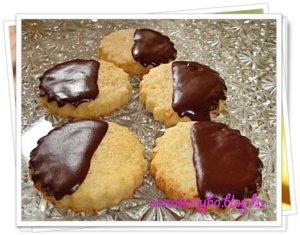 A tészta hozzávalóit kimérem ,a gyúrólapon elmorzsolom, majd összegyúrom. 4x-5x nyújtom, hajtogatom. Végül 2-3 mm-re nyújtom és csillag formával kiszaggatom. 180°C-os sütőben, 10-15 perc alatt világosra sütöm. Kihűlés után olvasztott csokoládéval lekenem a tetejének felét.