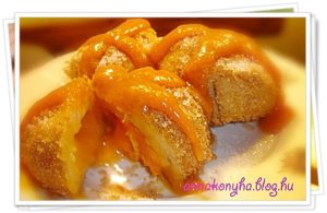 Porcukorral meghintve, sárgabarack öntettel tálalom a gombócokat.
