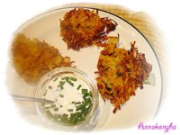 Hozzávalók: 50 dkg megtisztított csicsóka, 30 dkg megtisztított sárgarépa, 3 gerezd fokhagyma, só, bors 1 csokor snidling, 2-3 ek kukoricaliszt, 2 db tojás, olaj a sütéshez, Elkészítése: A megtisztított csicsókát és a sárgarépát almareszelőn lereszele, a levét alaposan kinyomkodom, majd fűszerezem, hozzáadokk 2 db tojást, 3 ek kukoricalisztet, és összedolgozom. Egy serpenyőben kevés olajat…