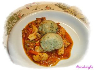 Egy mélyebb serpenyőben erős lángon, kevés olajon megpirítom a mellfilét, majd hozzáadom a lila hagymát, a fokhagymát, majd a paprikát és a paradicsomot. Sózom, borsozom, ízesítem a bazsalikommal, majd aláöntöm a bort, és lefedve lassú tűzön párolom.