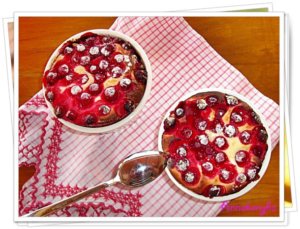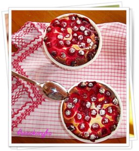 A ribizlit lisztbe forgatom, majd a felesleget lerázom, és a szemeket a masszába nyomkodom.