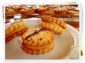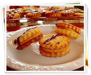 Rácsra rakom őket kihűlni, majd 2-2 korongot a karamellkrémmel összeragasztok. A tetejére olvasztott csokoládét csorgatok, majd egy napig félreteszem, hogy összeérjenek az ízek. és összeragadjanak a lapok! 🙂