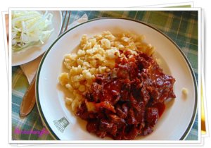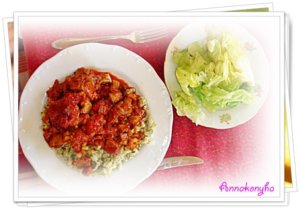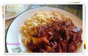 Kapros galuskával, és friss fejes salátával tálaltam.