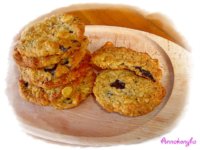 Hozzávalók: 15 dkg cukor vagy édesítőszer, 20 dkg vajízű margarin, 2-3 ek méz, 7,5 dkg zabpehely, 7,5 kg kukoricapehely, 10 dkg liszt, 10 dkg kukoricaliszt, 2 tk szódabikarbóna, 10 dkg kókuszreszelék, 10 dkg 70 %-os étcsokoládé, Elkészítése: A csokoládét felaprítom. A cukrot, a mézet és a puha vajat habosra keverem. A száraz hozzávalókat…