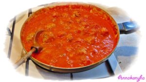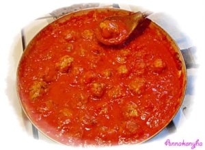 A darált húst elkeverem 2 gerezd zúzott fokhagymával, a zsemlemorzsával, a tojással, sóval, borssal, és az aprított petrezselyemmel. Fél órát hagyom pihenni, majd egészen apró, diónyi kis gombócokat formázok belőle. Egy nagyobb méretű, mélyebb serpenyőben, kevés olajon gyorsan körbesütöm őket, majd kiszedem az olajból, és félreteszem.