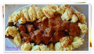 Tepsiben sütött-pirított hagymás dödöllével tálalom.