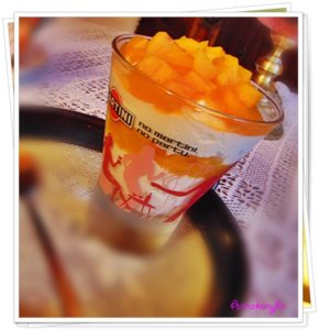 A poharak aljába 2 ek tejszínhabos krémsajtot teszek, erre 1 ek narancsdzsemet kanalazok, majd megszórom a datolyaszilvával. A rétegzést megismétlem.