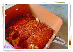 Egy mélyebb sütőtálat vékonyan kiolajozok. Az előfőzött rizst és a felaprított karfiolt összekeverem, és a tál aljába simítom. Ráhelyezem a harcsafiléket, majd a paradicsomos mártással leöntöm. Meglocsolom 1-2 evőkanál olívaolajjal, majd lefedve, 180 °C-on, 20-25 percig párolom.