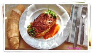 Kiveszem a tálat a sütőből, megszórom a maradék vágott bazsalikom levéllel, és már tálalom is.