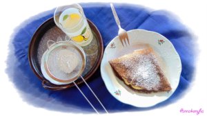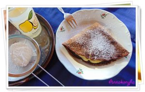 A kész palacsintákat megkenem a citromkrémmel, négyrét hajtom, majd porcukorral vékonyan behintem.