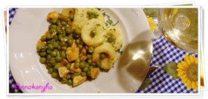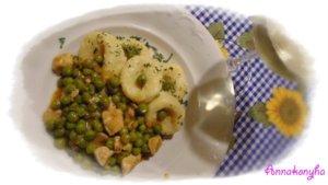 A szaftos borsós ragut a burgonya tallérokkal tálalom.