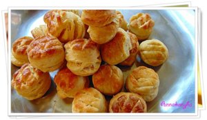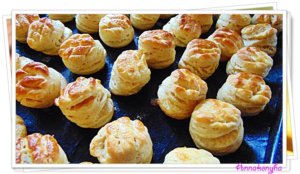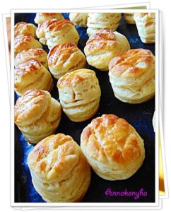 Az utolsó pihentetés után a tésztát kinyújtom és a tetejét késsel rácsosra bevagdosom, majd pogácsaszaggatóval kiszúrom a tetejét. Tojással lekenem, és 200 fokon, kb 20 perc alatt szép pirosra megsütöm.