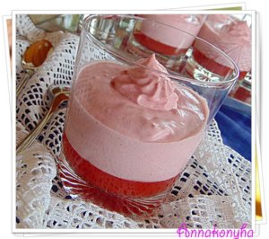 Az eperlevet (ha nem elég vízzel pótlom ) összekeverem a tortazselével, majd forrásig melegítem. Egy kicsit hagyom hűlni, majd az előkészített poharak aljába elosztom. Hűlni hagyom.
