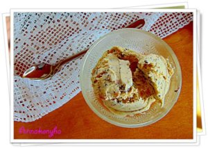 A félig megfagyott fagylaltot a mélyhűtőből kiveszem, és keverőgéppel alaposan átkeverem, majd a felaprított étcsokoládét is belekeverem, és a fagyasztóba visszateszem. Fogyasztás előtt hagyom 5-10 percet felengedni.