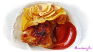 Lefedem, és 200 °C-os sütőben, 30-40 percig sütöm. Végül leveszem a fedőt, és megpirítom a csirkecombokat.