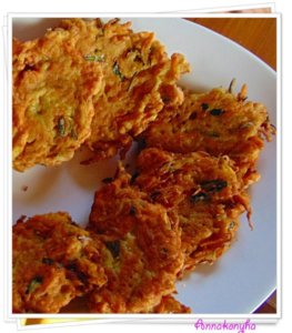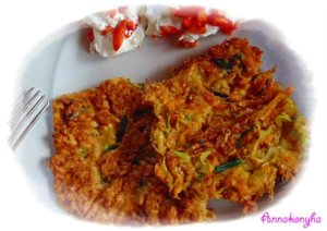 Egy serpenyőbe felforrósítom az olajat, és 2 evőkanálnyi masszát lepényszerűen ellapítok a kanál hátuljával. Megsütöm a kis lepények mindkét oldalát. Melegen tálalom fokhagymás uborka mártogatóssal, vagy idő hiányában csak egyszerűen fokhagymás tejföllel.