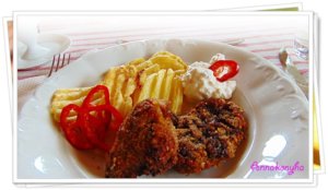 A tejből kivéve, lecsöpögtetem, papírtörlővel leitatom. Lisztbe-tojásba-kukoricapehelybe forgatom, és bő, nem túl forró olajban, fedő nélkül, szita -fedővel letakarva, kisütöm. A májba nem szúrom a villát, csak alányúlva megfordítom. Ha szükséges utána sózom, borsozom, és tálalom.