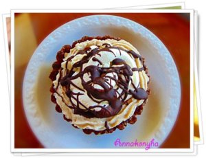 A csokoládét mikróban pár másodperc alatt felolvasztom, simára keverem, és a tejszínhab tetejére csorgatom.