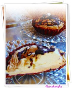 A krémet egy csillagcsöves habzsákba teszem, és a minipitéket feltöltöm a tészta pereméig.