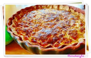 A lehűtött tésztát enyhén lisztezett felületen kb 30 cm átmérőjű, kerek lappá sodrom, majd egy 26 cm átmérőjű sütőformát kibélelek vele úgy, hogy az oldalát is befedje.