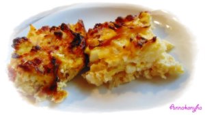 180°C-os sütőben pirosra sütöm, majd a reszelt sajtot a tetejére szórom, és pár percre visszateszem a sütőbe, amíg a sajt ráolvad.