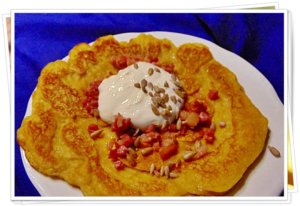 Amikor lehűlt aprítóba teszem a tejjel és a tojással együtt, majd pépesre keverem. Sózom, borsozom, majd a szódabikarbónás liszttel együtt tovább keverem. Egy krémes állagú, a palacsintánál kicsit sűrűbb masszát kapok.
