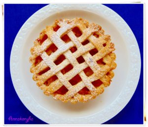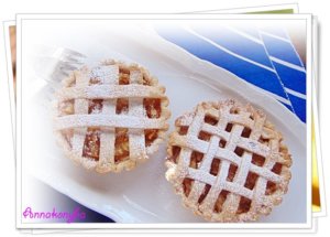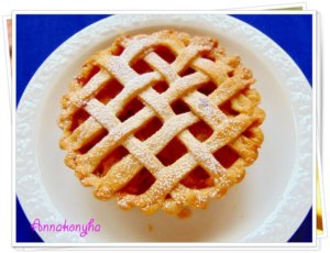10 részre osztom, lisztezett felületen tenyérnyi méretű, kerek formára kinyújtom, majd a kis piteformákba illesztem-nyomkodom a tésztát úgy, hogy szép kis pereme legyen. A felesleges, leeső darabokat félreteszem, majd a végén összegyúrom. Ebből lesz a rácsozat a tetejére. A tésztával kibélelt piteformákat visszateszem a hűtőbe .