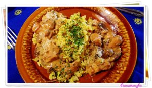 Petrezselymes párolt rizzsel tálalom.