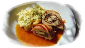 A sütőtálba maradt szaftot egy kisebb edénybe kiöntöm, botmixerrel simára turmixolom, aprított petrezselyemmel ízesítem. 1 ek keményítőt 2-3 ek szafttal kikeverek és a mártást besűrítem vele. Ha szükséges fehérborral hígítom, egyet forralok rajta, amíg a kellő sűrűséget elérem.