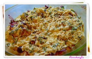 200 °C-os sütőben, lefedve 2-25 percig sütöm, majd a fedőt levéve még 10-15 percig pirítom.