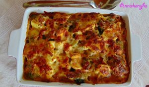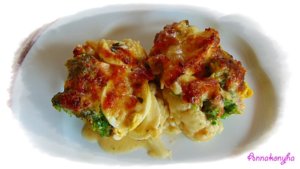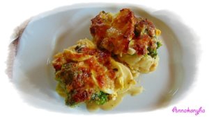 Egy tűzálló tálat a baconzsírral vékonyan kikenek, majd elrendezem benne a karfiol- és brokkolirózsákat. Közé illesztem a felkarikázott főtt tojásokat. Ráöntöm a sajtos mártást és 175 °C-os sütőben 20 -25 percig sütöm.