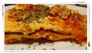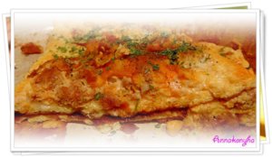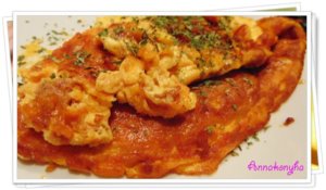 Variáció: A serpenyőben addig sütöm, amíg az alja megszilárdul, majd a sütőbe teszem és felső sütésen pár percig sütöm, hogy a teteje megkocsonyásodjon. Végül ugyanúgy félbehajtom, félbevágom.