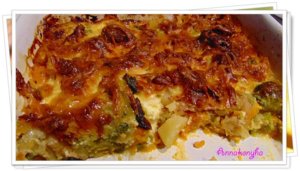 Összekeverem a tejszínt, a zúzott fokhagymát és a borsot. Egy tepsit kikenek vajjal, elrendezem benne a zöldségeket, megsózom, és meglocsolom a tejszínes keverékkel. A tetejére szórom a reszelt sajtot és a felaprított bacont, majd forró sütőben, 180 °C-on, 25-30 perc alatt megsütöm. Amikor a tejszín krémessé válik, a sajt megpirul, kiveszem a sütőből. Apróra vágott petrezselyemmel megszórom.