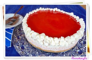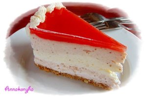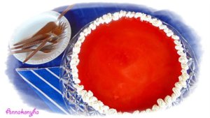 Amikor a krém teljesen lehűlt és megdermedt, elkészítem a málnás zselatin réteget.