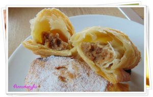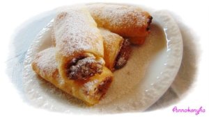 Sütőpapírral fedett tepsire teszem, és 180 fokra melegített sütőben, kb. 20-25 perc alatt kisütöm. Még melegen vaníliás porcukorral megszórom. Leveles, porhanyós kifliket kapok.