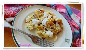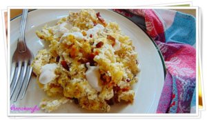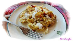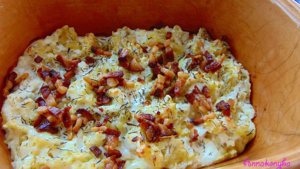 180 °C-os sütőben kb 20-25 perc alatt összesütöm. Tálalásnál a kisütött szalonnával megszórom, esetleg még tejfölt kínálok hozzá.