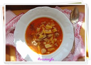 Végül megszórom a frissen aprított kaporral. A tejfölt a leves mellé tálalom, és mindenki ízlése szerint tesz bele, van aki anélkül szereti !