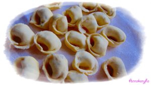 Lobogó, sós vízben a tortelliniket több lépésben al dente-re kifőzöm.