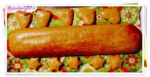 ( A fénykép a tönkölylisztes-eritrites változatról készült . A leeső kis darabokból nagyon finom mézeskalácsokat lehet kiszaggatni )