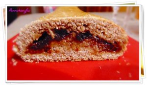 A középső egyharmadra egy csíkban rákenem a lekvár harmadát. A pirított és durvára vágott dió harmadával megszórom, majd először alulról, majd felülről egymásra hajtjuk a tésztát. A hajtással lefelé egy sütőpapírral kibélelt tepsibe átemelem a tésztarudat. Felvert tojással lekenem, majd ugyanígy elkészítem a másik két tekercset is.